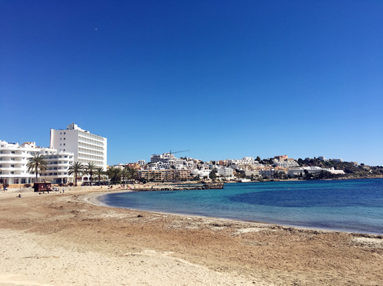 早上一起床就是面對一大片的海灘 (platja d'en Bossa)